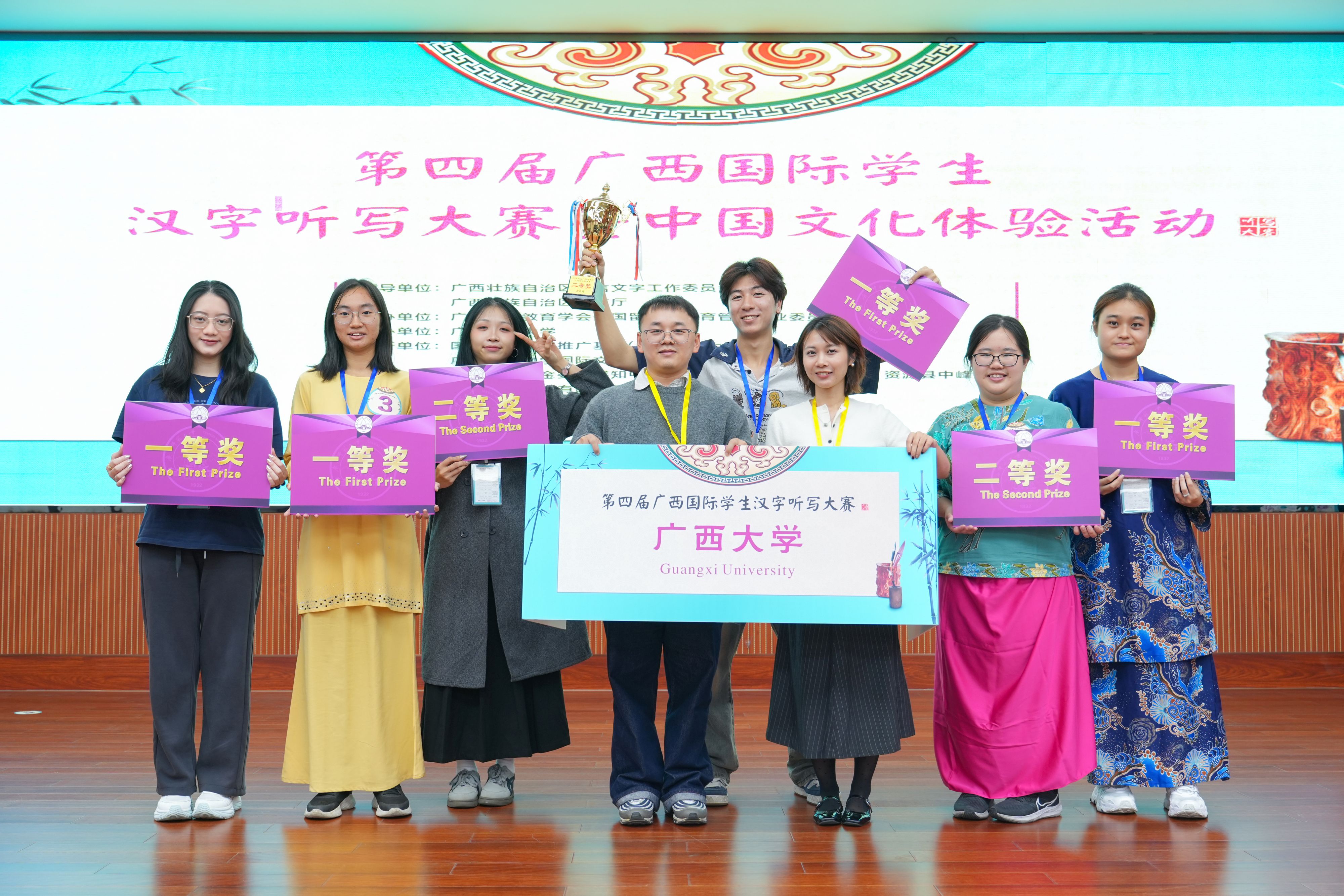 On November 17, the 30th China Daily "21st Century Cup" National English Speaking Competition concluded successfully in Hangzhou. Students from Guangxi University's School of Foreign Languages and Literatures demonstrated outstanding performance in the event, with undergraduate Chen Ruiying (first from right) earning a first prize in the national finals, while Li Xinyi and Wei Zhehan secured se...