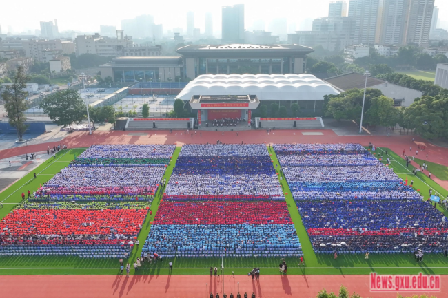 On September 2nd, a grand orientation ceremony was held for the 2024 freshman class, with 11,976 students at the West Campus Athletic Field. The event was attended by leaders including Li Jibing, Communist Party of China (CPC) Building Liaison Officer of the Chinese Ministry of Education, Li Guozhong, Secretary of the CPC GXU Committee, Han Linhai, Deputy Secretary of the CPC GXU Committee an...