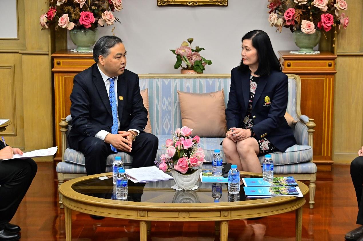On January 16, Xiao led the delegation to visit Chulalongkorn University in Thailand. Kaywalee Chatdarong, Deputy Vice Chancellor of Chulalongkorn University, attended the meeting. Officials from the Faculty of Engineering, School of Agricultural Resources and other faculties and schools attended the symposium. The two sides agreed to cooperate in the fields of civil engineering, machinery, chemical engineering, medicine and other fields on teacher-student exchanges, student joint training, building high-level research centers, and jointly carrying out international cooperation project declaration and research. A letter of intent for cooperation was signed in the symposium. After that, the delegation visited the teaching buildings and laboratories of the Faculty of Engineering of Chulalongkorn University.