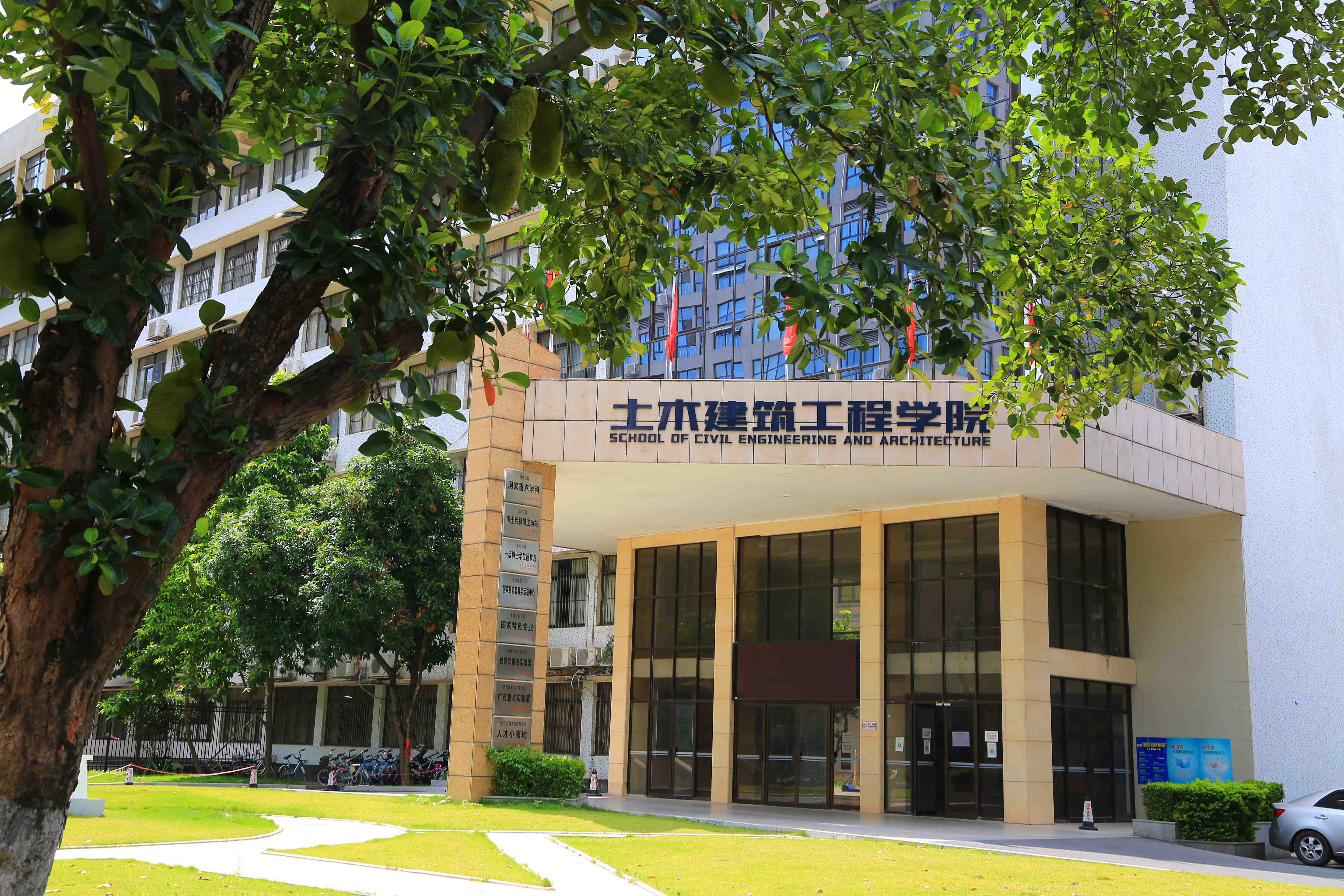 Năm 1997, ngành học Kỹ thuật kết cấu được chọn là ngành học xây dựng trọng điểm quốc gia của "Dự án 211", và năm 2002, được chọn vào danh sách ngành học trọng điểm quốc gia. Năm 2017, với sự quan tâm và hỗ trợ của Bộ Giáo dục và Khu tự trị dân tộc Choang Quảng Tây, ngành học Kỹ thuật xây dựng của viện tôi đã trở thành ngành học duy nhất ở Quảng Tây được chọn vào danh sách xây dựng "ngành học hạng nhất thế giới". Năm 2018, với tư cách là ngành học chính, đã được chọn là cụm ngành học hạng nhất do Bộ Giáo dục và khu tự trị cùng nhau xây dựng. Hiện tại, có 16 nền tảng hỗ trợ ngành học cấp quốc gia, tỉnh và bộ, bao gồm có Phòng thí nghiệm Trọng điểm Quốc gia về Vật liệu Kim loại Đặc sắc và Tính bền An toàn của kết cấu tổ hợp do tỉnh và bộ cùng xây dựng, Cơ sở Thu hút Nhân tài và Đổi mới Ngành học Tính bền An toàn cho cơ sở hạ tầng quan trọng của Hành lang mới trên đất liền phía Tây (Cơ sở 111), Trung tâm Nghiên cứu Kênh đào Mạng lưới nước và Xây dựng Thông minh của Phòng thí nghiệm Trọng điểm Quốc gia Học ngành thuỷ văn Công trình thủy lợi, thủy điện, Trung tâm Nghiên cứu Công trình của Bộ Giáo dục về Công nghệ then chốt của Cầu vòm nhịp dài, Chi nhánh Quảng Tây của Trung tâm nghiên cứu Công trình quốc gia về Xây dựng Cầu dài Đường lộ và Trung tâm nghiên cứu công nghệ xây dựng và Bảo trì cầu vòm nhịp dài, Trung tâm Kiểu mẫu Giảng dạy Thực nghiệm Quốc gia về Kỹ thuật Xây dựng và Kiến trúc, Phòng thí nghiệm Trọng điểm của Bộ Giáo dục về Công trình Phòng chống Thiên tai và An toàn Cấu trúc, Phòng thí nghiệm Trọng điểm Phòng chống và Giảm nhẹ Thiên tai và An toàn Công trình Quảng Tây, Trung tâm Nghiên cứu Công trình then chốt Công nghệ Khóa Cầu vòm nhịp dài Quảng Tây, Trung tâm Nghiên cứu Công nghệ Công trình An toàn Đường lộ Địa chất Đặc biệt Quảng Tây, Trung tâm Nghiên cứu Công trình an toàn điều khiển thông minh khu các-txơ Quảng Tây, Nơi Hội tụ Nhân tài Công trình Phòng chống Thiên và An toàn Cấu trúc Quảng Tây, Nơi Hội tụ Nhân tài Kỹ thuật then chốt về Cầu vòm nhịp dài Quảng Tây...