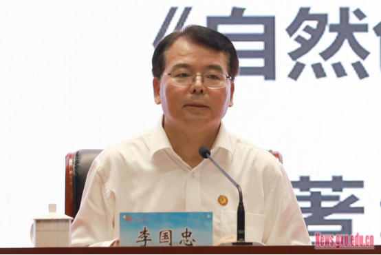 GS. Lý Quốc Trung khuyến khích mọi người luôn giữ vững tinh thần phấn đấu. Ông dùng tấm gương của Lương Quốc Thông -“Anh hùng Gấu trúc”, một cựu sinh viên trường chúng tôi đã hiến máu cứu người để khuyến khích mọi người bồi dưỡng nhân cách cao quý; lấy tấm gương của cựu sinh viên Nguỵ Nãi Văn, người thiết kế chính của bệ phóng tên lửa tàu ngầm hạt nhân, để khuyến khích mọi người khám phá phương pháp học tập; lấy tấm gương của Viện sĩ Trịnh Giai Liên, Viện sĩ Vương Song Phi để khuyến khích mọi người dám đổi mới. Cuối cùng, ông khuyến khích các em từ nay trở đi hãy đảm nhận những trách nhiệm quan trọng của thời đại với tư cách là “sinh viên Trường Đại học Quảng Tây”, đồng thời trở thành những thanh niên Trung Quốc với trong lòng có lý tưởng, dám đảm nhận trách nhiệm, chịu đựng gian khổ và có tinh thần phấn đấu trong thời đại mới.