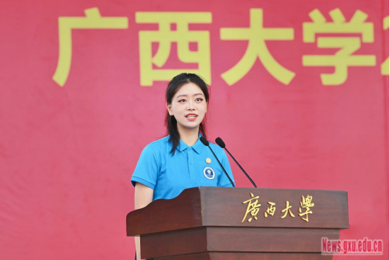 Trong bài phát biểu của mình, đại diện tân sinh viên khóa 2024, sinh viên chuyên ngành Khoa học biển, Học viện Hải dương Trần Mộng Kha, đã bày tỏ nguyện vọng của các tân sinh viên Đại học Quảng Tây: tiếp nối tinh thần và kế thừa ngọn đuốc của Đại học Quảng Tây; đoàn kết để phấn đấu vươn lên, quyết tâm đổi mới và phát triển; phục vụ cho “mối quan tâm của nhà nước”, chủ động gánh vác trách nhiệm. Trong bài phát biểu, nghiên cứu sinh tiến sĩ năm 2022 của Học viện Hóa học và Công nghệ Hóa học Nhậm Đăng Huy đã chia sẻ kinh nghiệm và cảm tưởng của mình trong quá trình học tập tại trường: có thể rèn luyện sức mạnh vượt qua các khó khăn và thách thức, có thể rèn luyện thói quen học tập và tư duy, cần lập chí hướng nỗ lực vì tổ quốc và thế giới.