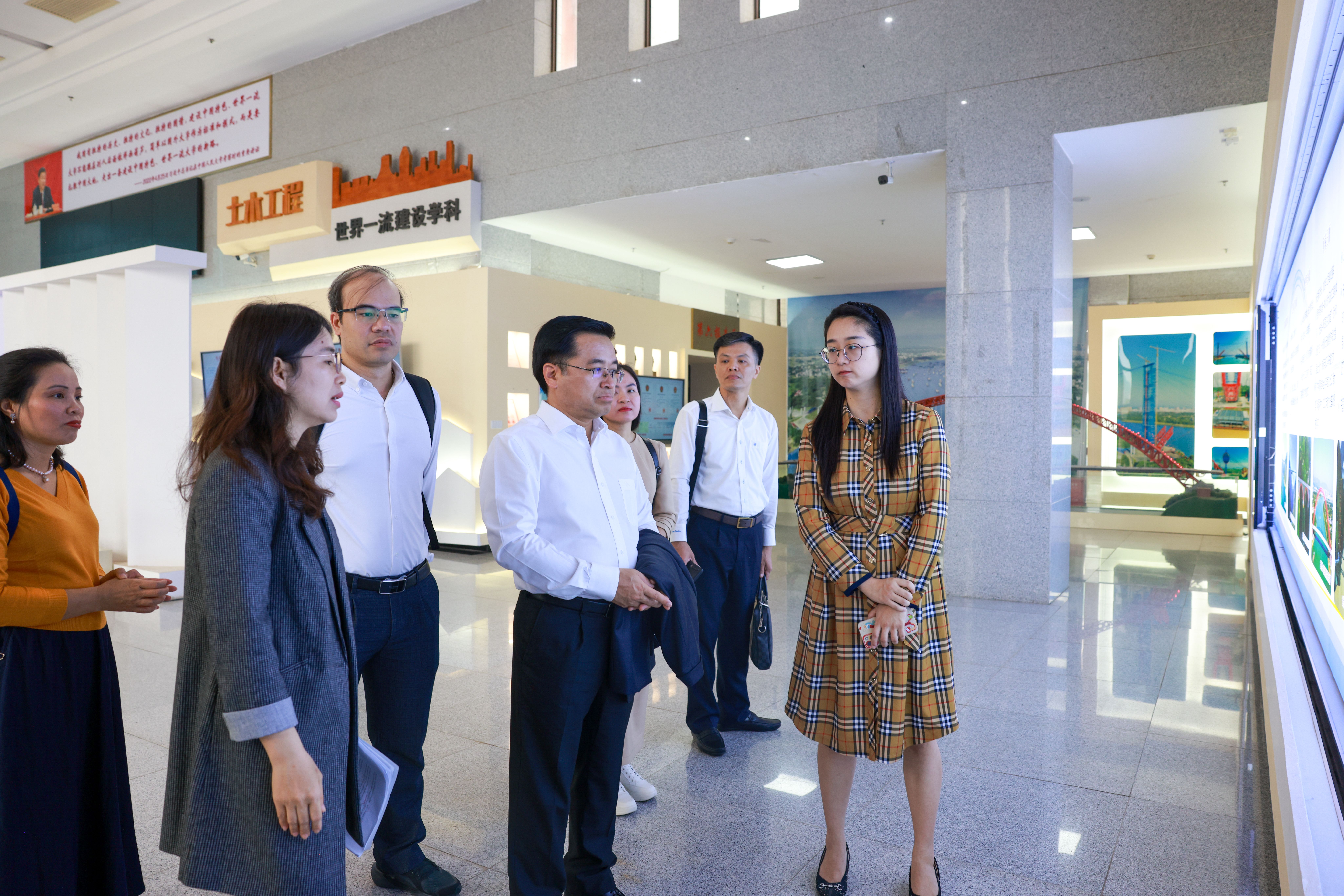 တွေ့ဆုံပွဲအပြီးတွင် ကိုယ်စားလှယ်အဖွဲ့သည် GXU ၏ မြို့ပြအင်ဂျင်နီယာနှင့် ဗိသုကာကောလိပ်ရှိ အကြီးစားတည်ဆောက်ပုံစမ်းသပ်ခြင်းနှင့် သုတေသနပလပ်ဖောင်းကို သွားရောက်လေ့လာခဲ့ပြီး ပထမတန်းစား ပညာရပ်စည်းကမ်းဖွံ့ဖြိုးတိုးတက်မှုတွင် တက္ကသိုလ်၏တိုးတက်မှုကို လေ့လာခဲ့ပါသည်။ကိုယ်စားလှယ်အဖွဲ့သည် GXU's Campus ရှိ ယခင် Yucai School Auditorium ၏ အောက်မေ့ရာခန်းမသို့လည်း သွားရောက်ခဲ့ကြပြီး နန်နင်းတွင် ၁၉၅၁ ခုနှစ်မှ ၁၉၅၈ ခုနှစ်အထိ တည်ထောင်ခဲ့သော ဗီယက်နမ်ကျောင်းသားများအတွက် ဗဟိုကျောင်းဇုန်၏ သမိုင်းကြောင်းကို စူးစမ်းလေ့လာခဲ့ကြသည်။ဤခရီးစဉ်သည် တရုတ်နှင့် ဗီယက်နမ် နှစ်နိုင်ငံ ချစ်ကြည်ရင်းနှီးမှုကို အထိမ်းအမှတ်ပြု၍ ဟိုချီမင်း ရုပ်တုရှေ့တွင် မှတ်တမ်း ဓာတ်ပုံရိုက်ခဲ့ကြသည်။