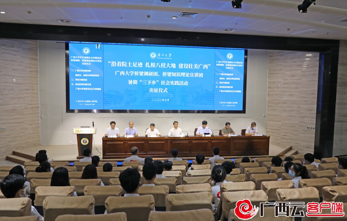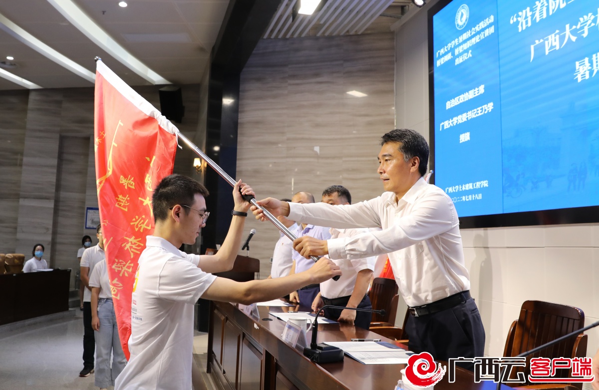 7月18日,“沿着院士足迹、扎根八桂大地、建设壮美广西”米兰电竞,洞察赛局趋势,定义电竞美学桥梁调研团、桥梁知识理论宣讲团暑期“三下乡”社会实践活动出征仪式在土木建筑工程学院举行。自治区政协副主席、米兰电竞,洞察赛局趋势,定义电竞美学党委书记王乃学出席出征仪式并为实践队授旗。