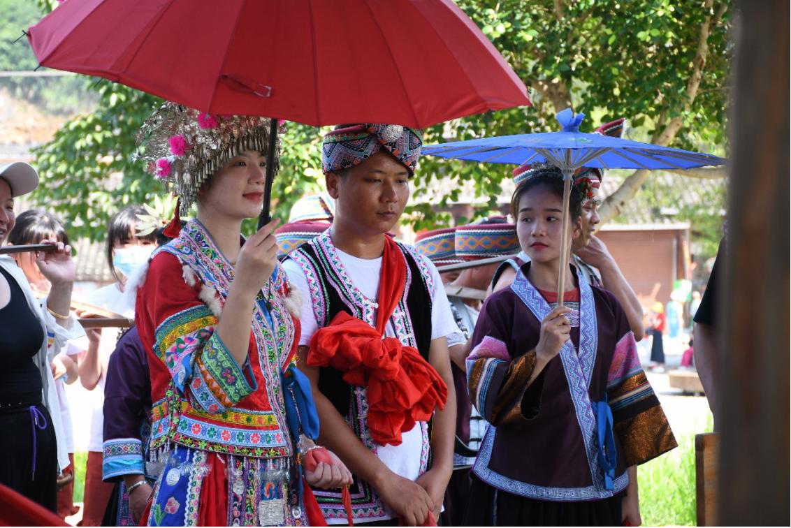 据了解,梦呜苗寨是自治区易地扶贫搬迁试点,以民族风情展示和民俗休闲体验为特色,把苗族村寨的文化资源,转化为促进传承发展、增加群众收入的旅游新路径,推动脱贫攻坚成果与乡村振兴有效衔接。