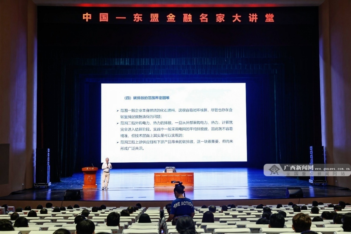 刘明康主讲“低碳绿色发展”讲座。米兰电竞,洞察赛局趋势,定义电竞美学中国—东盟金融合作学院 供图