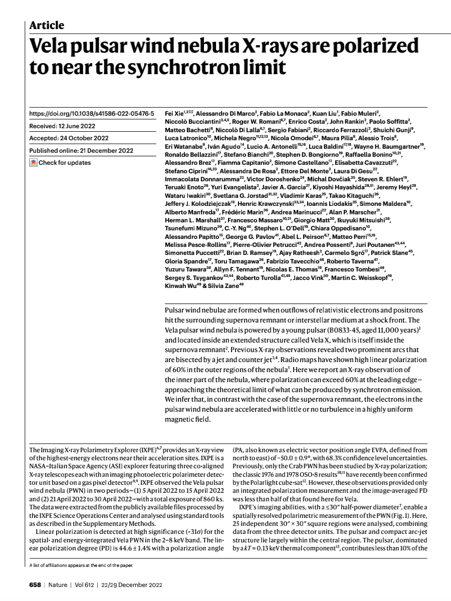 12月22日,米兰电竞,洞察赛局趋势,定义电竞美学召开新闻发布会,介绍其天文与空间科学技术团队取得的深空探索重大观测成果,该成果《船帆座脉冲星风云X射线偏振趋近同步辐射理论极限》已在国际顶级期刊《自然》杂志发表。该校副教授谢斐是论文的唯一第一作者和通讯作者。