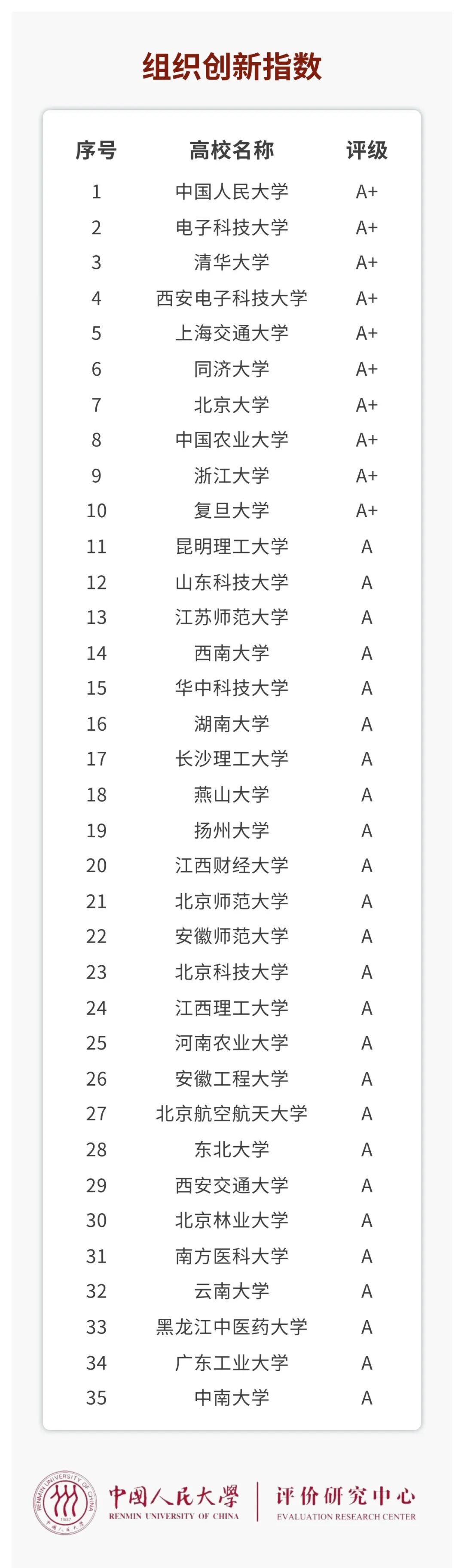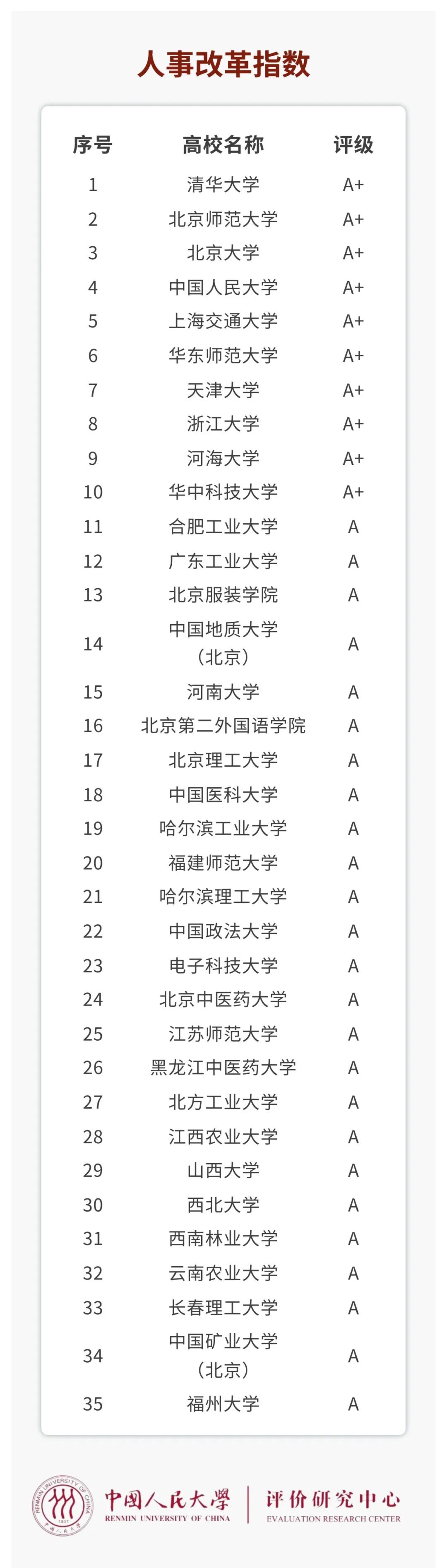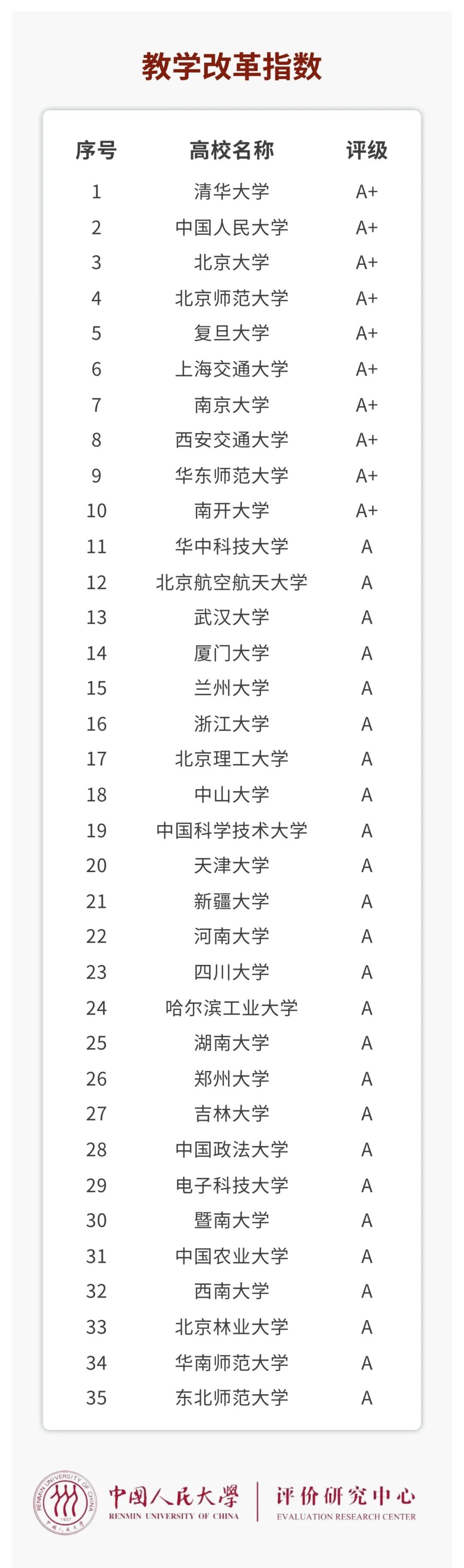在梳理高校改革创新实践的基础上,中国人民大学评价中心还对头部高校在教学改革、科研改革、组织创新、人事改革、环境创新等五个方面的改革创新进行分类评价,研制出“2022年中国大学改革创新指数”及五个分榜单。