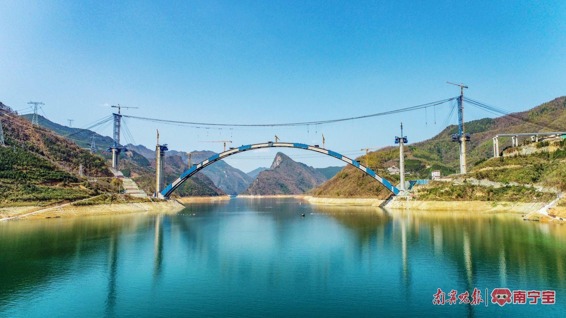 19日,记者在项目建设现场看到,在静谧的红水河上,两岸青山之间,一座气势恢宏的大桥已经芳容初露。据悉,目前大桥已完成劲性骨架吊装合龙和管内混凝土灌注施工,目前正在进行外包混凝土施工。广西交通投资集团南丹至天峨下老高速公路工程建设指挥部指挥长黎水昌介绍,项目开工建设以来推进顺利,大桥进度完成率约66%,预计今年年底建成通车。
