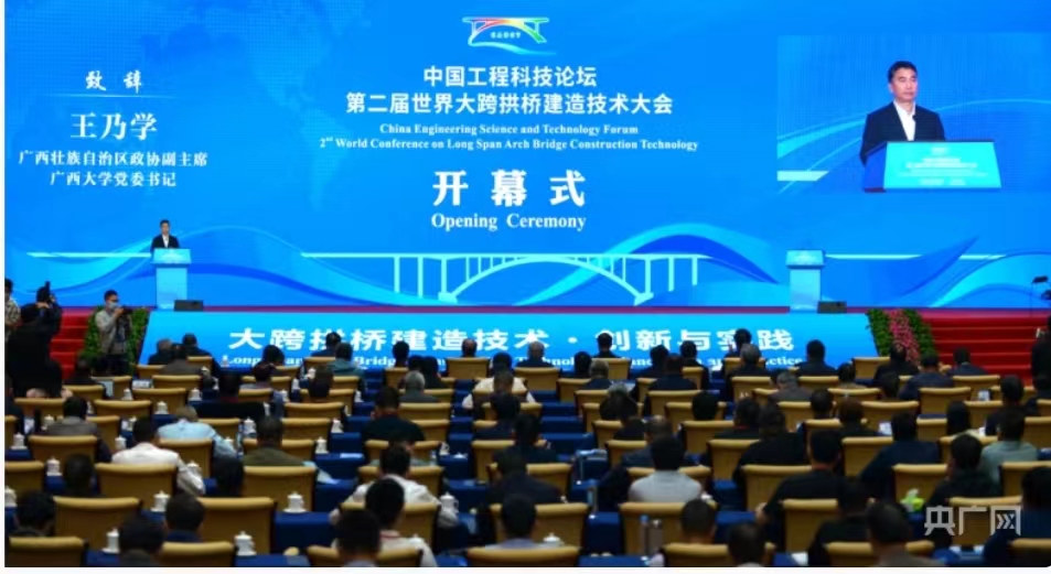 “中国是桥梁大国,广西是拱桥设计建造的代表性省区。”广西壮族自治区党委副书记刘小明在开幕式致辞中介绍,“目前在建的广西天峨龙滩特大桥是西部陆海新通道线上的重要控制性工程,主桥跨径600米,建成后将成为世界最大跨径拱桥。”