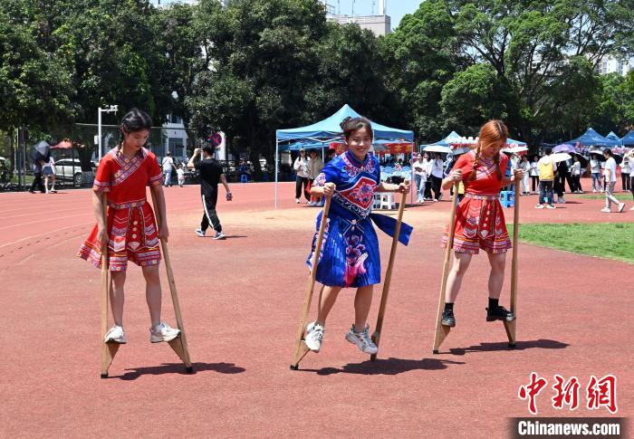 图为大学生在体验高脚马项目。 米兰电竞,洞察赛局趋势,定义电竞美学供图