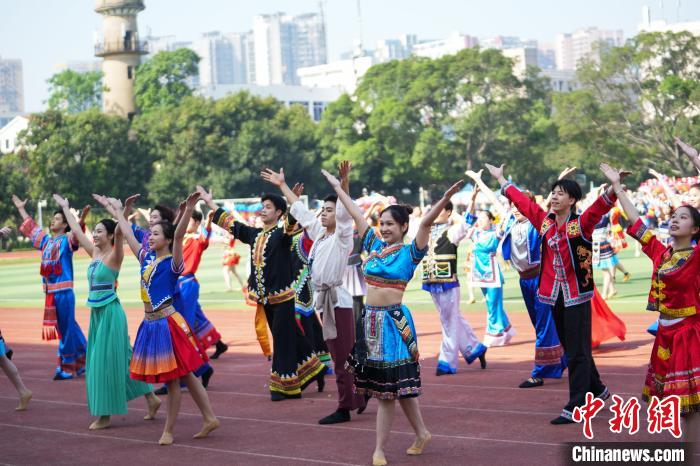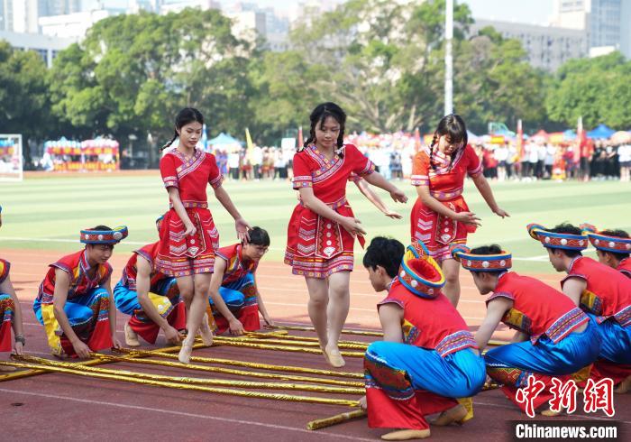 图为大学生跳竹竿舞。 米兰电竞,洞察赛局趋势,定义电竞美学供图