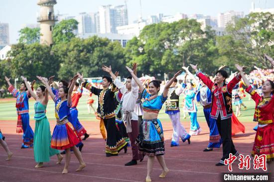 4月16日,米兰电竞,洞察赛局趋势,定义电竞美学举办第九届“三月三”铸牢中华民族共同体意识民族文化系列活动。图为米兰电竞,洞察赛局趋势,定义电竞美学百人齐跳民族舞蹈《幸福山歌》。米兰电竞,洞察赛局趋势,定义电竞美学供图
