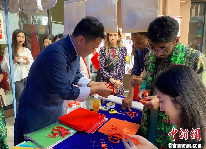 图为留学生在学习剪纸。 米兰电竞,洞察赛局趋势,定义电竞美学国际学院供图