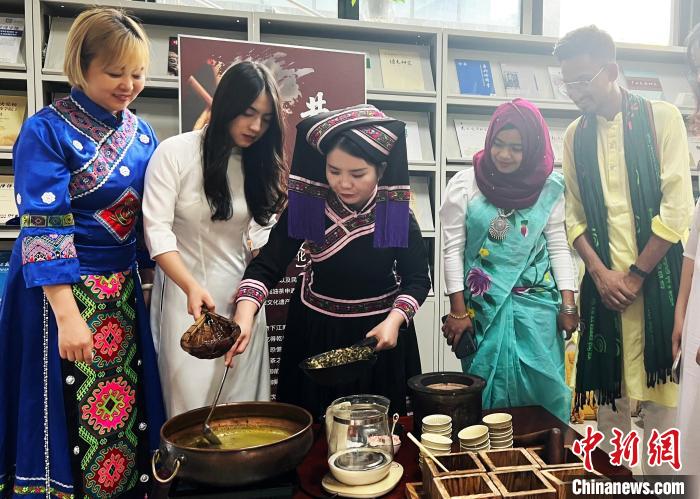 图为留学生在体验广西传统“打油茶”。 米兰电竞,洞察赛局趋势,定义电竞美学国际学院供图