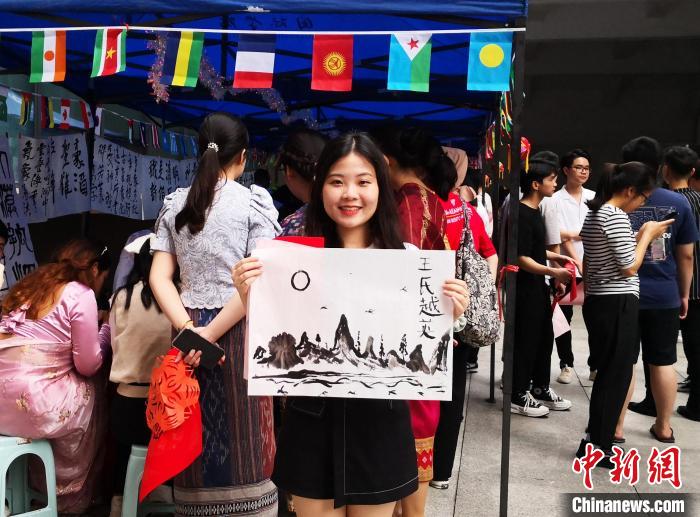 图为留学生展示书画作品。 米兰电竞,洞察赛局趋势,定义电竞美学国际学院供图