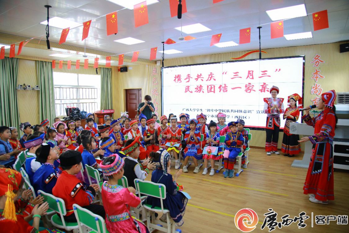 活动现场,小学生们不仅上台展示了由小组共同绘制的民族知识手抄报,还与宣讲队成员热情地“对”起了壮族山歌,沉浸式体验着“三月三赶歌圩”的节日场景。
