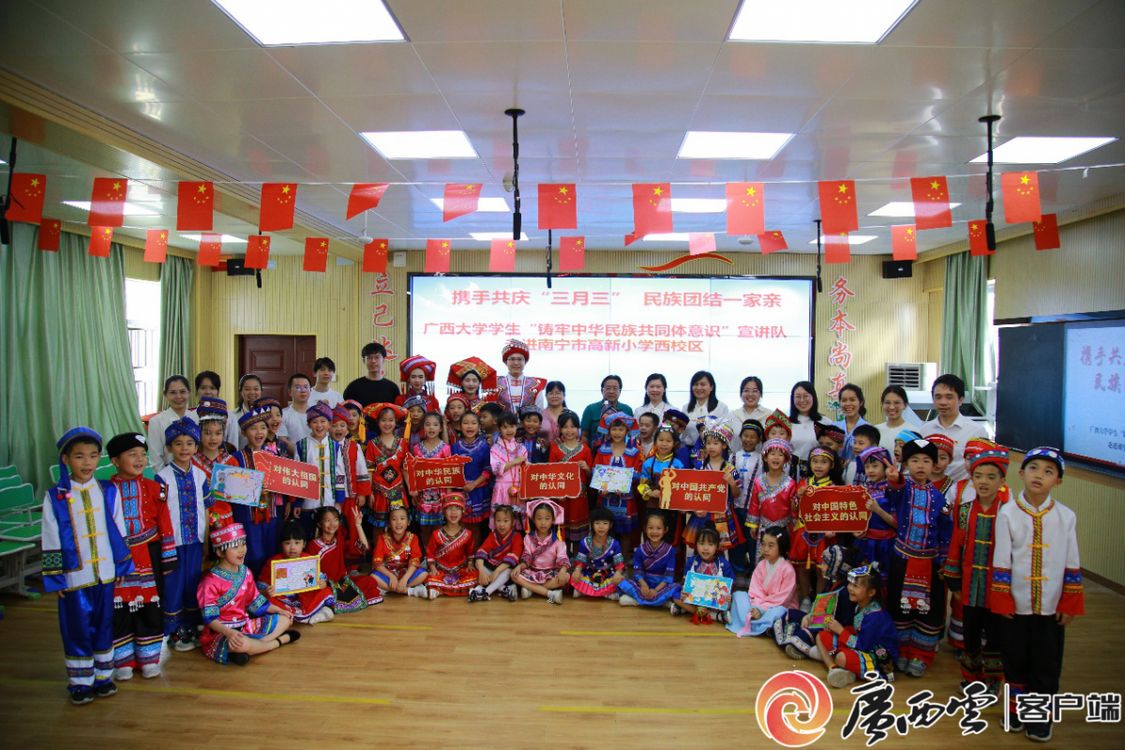 4月19日,南宁市高新小学西校区与米兰电竞,洞察赛局趋势,定义电竞美学学生“铸牢中华民族共同体意识”宣讲队共同开展“携手共庆‘三月三’,民族团结一家亲”主题活动。