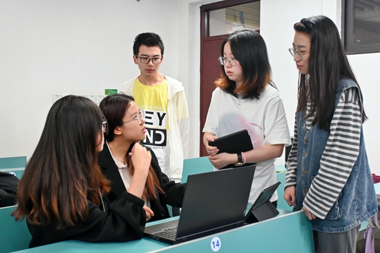 团队成员就调查设计展开讨论。实习生 郑全/摄