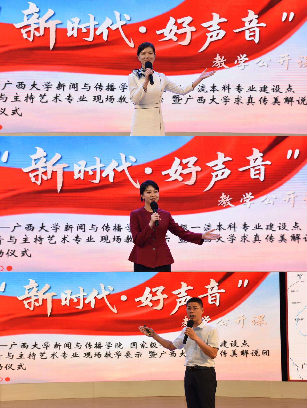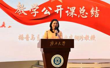 最后,播音与主持艺术专业负责人李朝珍教授进行总结,她表示本次教育公开课是播音与主持艺术专业国家级一流专业建设的一次积极探索,未来该专业将通过校企合作、产教融合的方式,共同打造新时代好声音,讲好中国故事,讲好广西故事,讲好红色文化故事,向世界传播可亲可信可爱的中国形象一起努力。