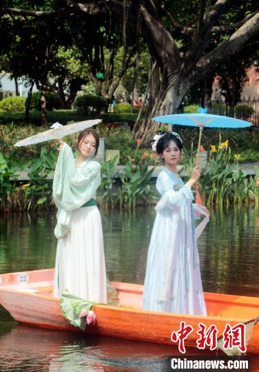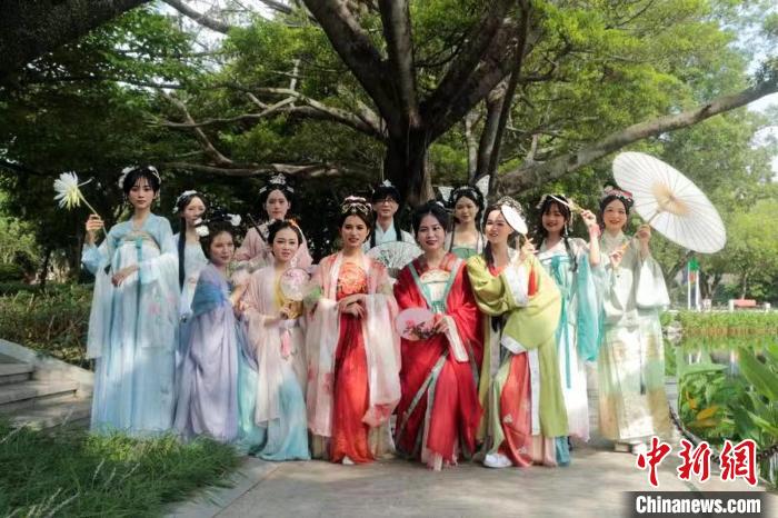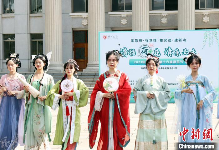 图为荷花主题汉服体验现场。 刘美芸 摄