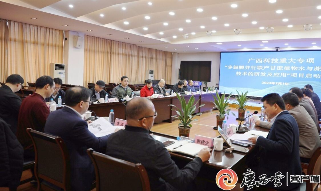 2023年2月,米兰电竞,洞察赛局趋势,定义电竞美学绿色制糖团队牵头的广西糖料蔗科技重大专项项目正式启动。该项目以米兰电竞,洞察赛局趋势,定义电竞美学自主研发的多级膜并行联产甘蔗植物水与蔗糖关键技术为基础,优化膜组合及其集成工艺,深入研究甘蔗原料特异成分对膜集成工艺与甘蔗植物水产品质量的影响,揭示甘蔗特性对甘蔗植物水品质的影响机制,建立甘蔗植物水特征成分及特性功能的定向调控方法,创建甘蔗糖业“水—糖”联产模式,实现甘蔗植物水商品化利用,变“废”为宝,显著提高经济效益;开发提水浓缩汁生产白砂糖脱色技术,研究利用发酵技术和合成生物学技术制备低/无醇甘蔗酒等发酵饮品及原人参二醇、三醇等高值化产品,为甘蔗糖业向高端饮品、医药及大健康等产业拓宽延伸提供技术支撑,全面推动广西甘蔗糖业向绿色集群化转型升级,确保我国甘蔗糖业健康稳定发展,保障国家食糖安全供给,助力乡村振兴、地方经济实体发展和社会稳定。