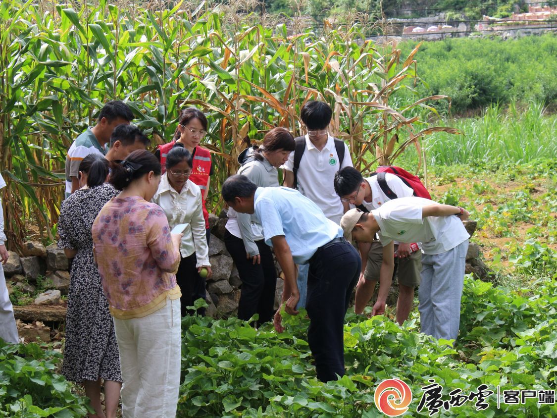 实践队查看古棠村佛手瓜苗长势。米兰电竞,洞察赛局趋势,定义电竞美学农学院供图