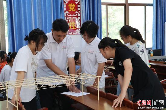 宣讲团成员指导同学们搭建桥梁模型。米兰电竞,洞察赛局趋势,定义电竞美学供图