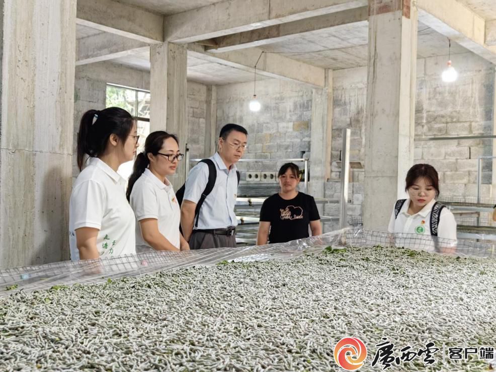 实践团成员在百林村了解农户养蚕情况。在百林村实地考察中,实践团师生走村入户调研,实地观察百林村农户养蚕情况,详细了解当地桑蚕产业发展现状与产业振兴对农民实现脱贫致富目标的帮助,结合自身所知所学认真体悟。