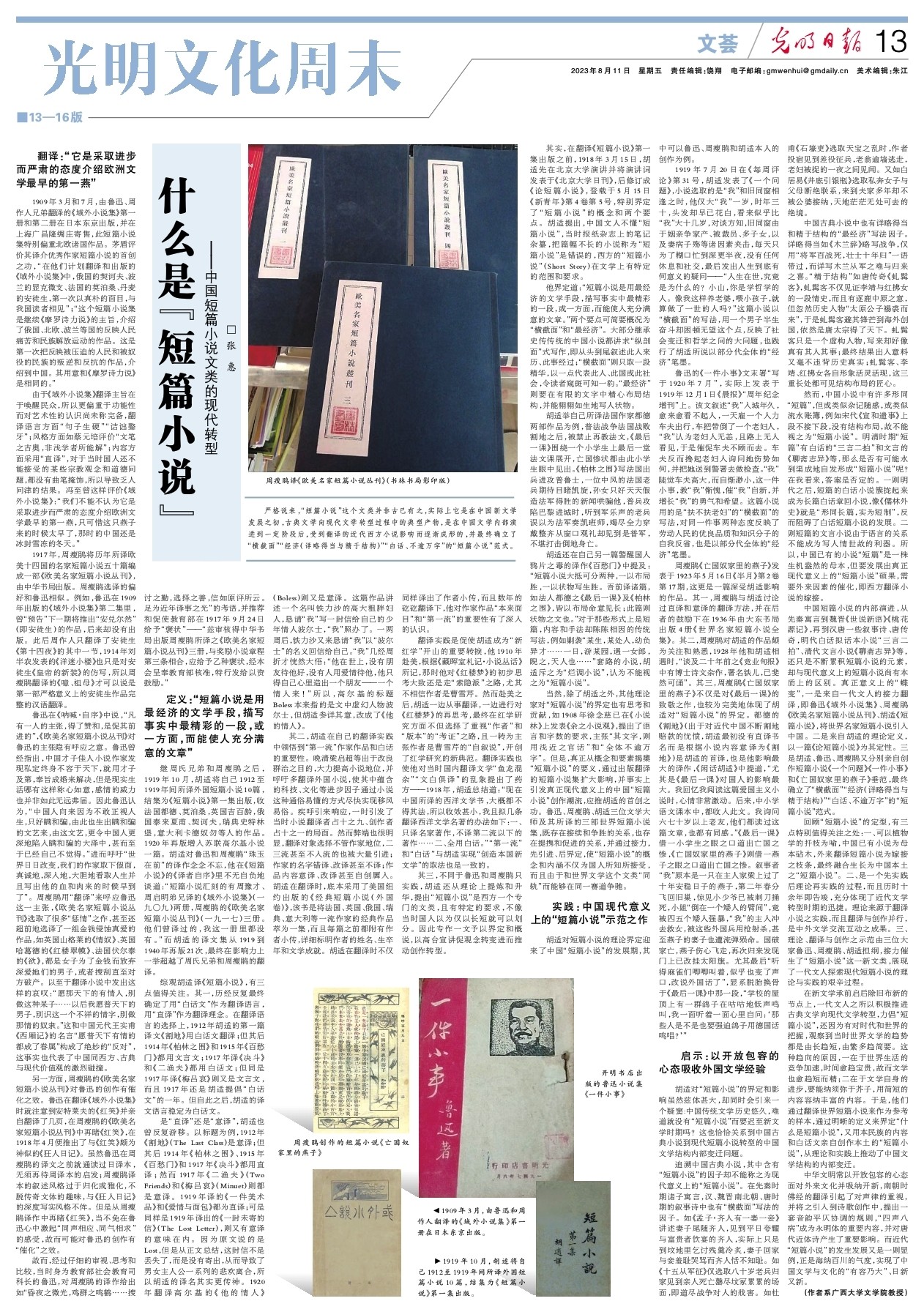 在新文学承前启后除旧布新的节点上,一代文人之所以积极推进古典文学向现代文学转型,力倡“短篇小说”,还因为有对时代和世界的把握,观察到当时世界文学的趋势都是由长趋短,由繁多趋简要。这种趋向的原因,一在于世界生活的竞争加速,时间愈趋宝贵,故而文学也愈趋短而精;二在于文学自身的进步,要能纳须弥于芥子,用简短的内容容纳丰富的内容。于是,他们通过翻译世界短篇小说来作为参考的样本,通过明晰的定义来界定“什么是短篇小说”,又用本民族的内容和白话文亲自创作本土的“短篇小说”,从理论和实践上推动了中国文学结构的内部变迁。