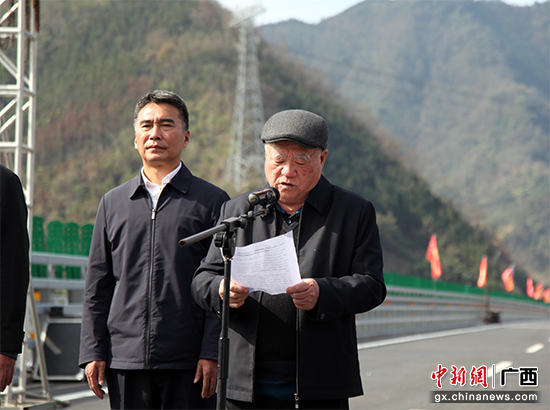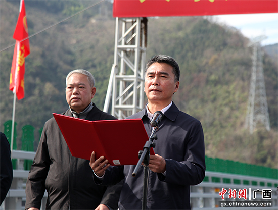 广西壮族自治区政协副主席王乃学(右)宣布大桥建成通车。广西路桥供图