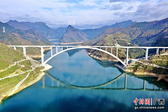 2月1日,跨径600米的世界最大跨径混凝土拱桥——天峨龙滩特大桥建成通车。广西路桥供图