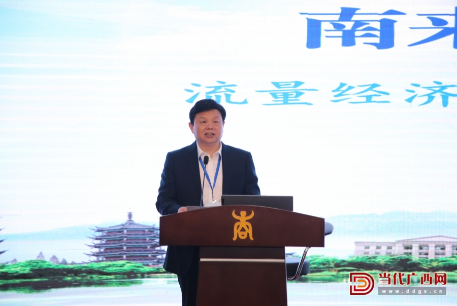 南宁市文化广电和旅游局党组书记、市委宣传部副部长(兼)张振宇作主旨发言。记者 卢松见 摄