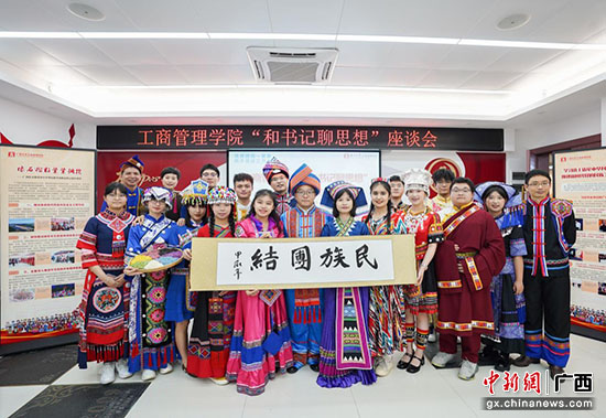 罗诚不时对同学们的分享和展示报以肯定和赞许。他称,在喜迎广西“三月三”之际开展这次活动恰逢其时、意义重大,希望同学们在各民族的交流交往和交融中,不断铸牢中华民族共同体意识,像石榴籽一样紧紧地抱在一起。经过2个小时的畅聊,师生们仍然意犹未尽,来自仫佬族的吴静妃同学表示,要做民族团结的践行者,与各民族同学一起学习、携手进步。