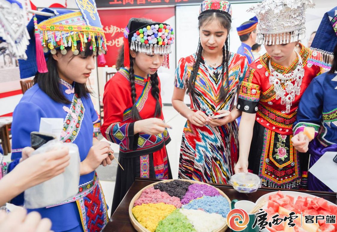 罗诚不时对同学们的分享和展示报以肯定和赞许,他表示,在喜迎广西三月三之际开展这次活动恰逢其时、意义重大,希望同学们在各民族的交流交往和交融中,不断铸牢中华民族共同体意识,像石榴籽一样紧紧地抱在一起。经过2个小时的畅聊,师生们仍然意犹未尽,来自仫佬族的吴静妃同学表示,要做民族团结的践行者,与各民族同学一起学习、携手进步。