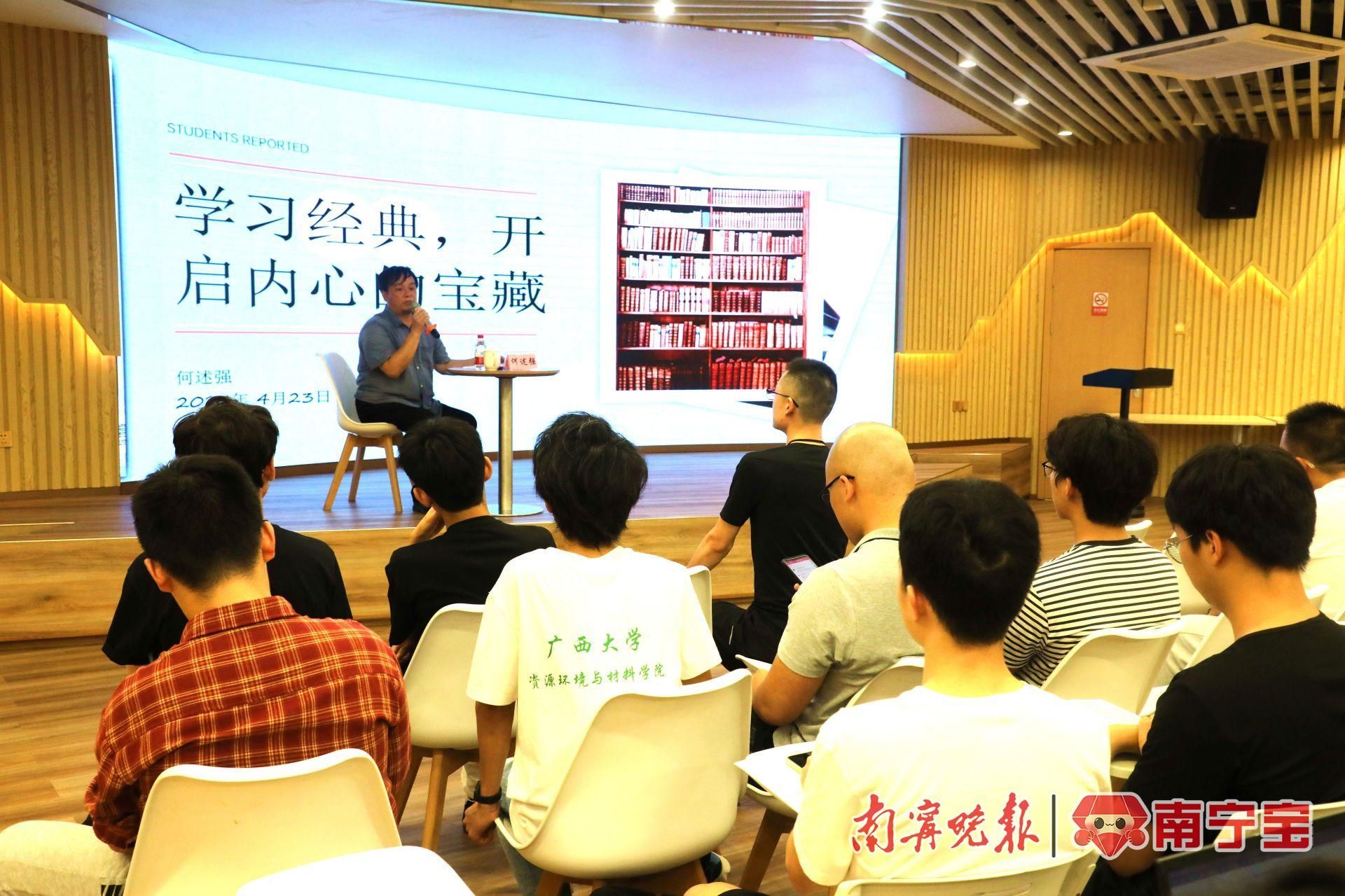 “我今天的讲座,就是希望大家适当告别手机。每天都留出一点时间,让心灵安静下来。放下手机,捧起经典,经典阅读实际上是让我们的生命变得丰富的最有效的途径。”4月23日为世界读书日,当天在米兰电竞,洞察赛局趋势,定义电竞美学图书馆举办的崇文大讲坛活动中,散文家何述强在与读者分享《学习经典 开启内心的宝藏》时提出了自己的希望。