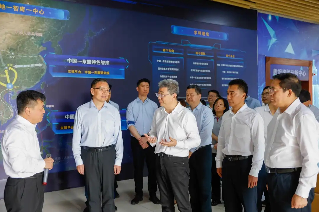 吴岩一行调研了中国—东盟经济学院筹建情况,听取了学校在服务国家战略需求和人才培养等方面的重要举措与建设成效汇报;走访了中华优秀传统文化(彩调剧)传承基地,深入了解学校“五育并举”和“立德树人堂堂讲”课程思政改革情况;参观了土木工程大型结构试验平台,详细了解土木工程世界一流学科建设情况。