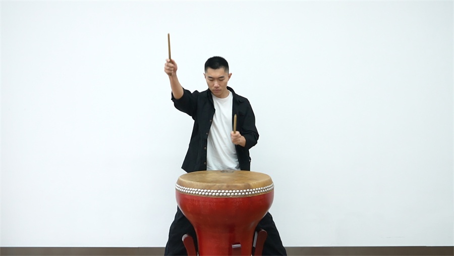 刘隽州练习演奏花盆鼓。 张友豪 摄