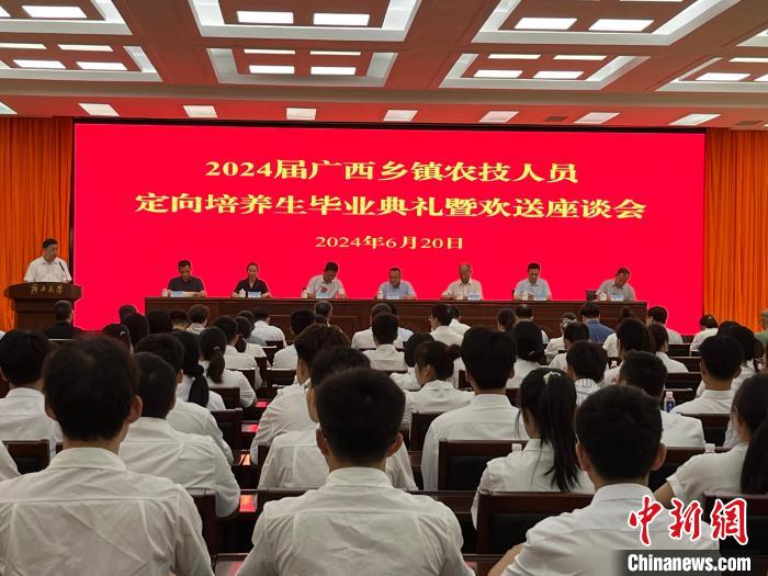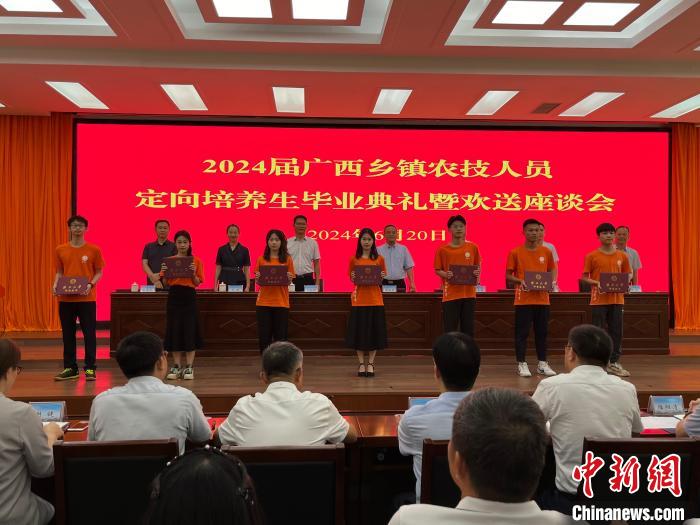 6月20日,2024届广西乡镇农技人员定向培养毕业生毕业典礼暨欢送座谈会在南宁市举行。145名乡镇农技定向生毕业,将扎根基层,开展技术示范推广、指导服务工作。