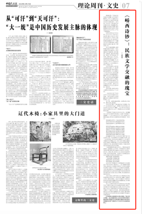 总之,以《峤西诗钞》为代表的壮汉文学交融作品,勾勒出民族文学互动演进的脉络,展现了各民族交往交流交融的动人画卷,为中华文学发展注入活力,为做好铸牢中华民族共同体意识工作提供了丰富的文学资源。要加快推进明清时期壮汉文学交融文献整理,深入发掘、通俗阐释其中蕴含的文化认同价值,助力构建中华民族共有精神家园。