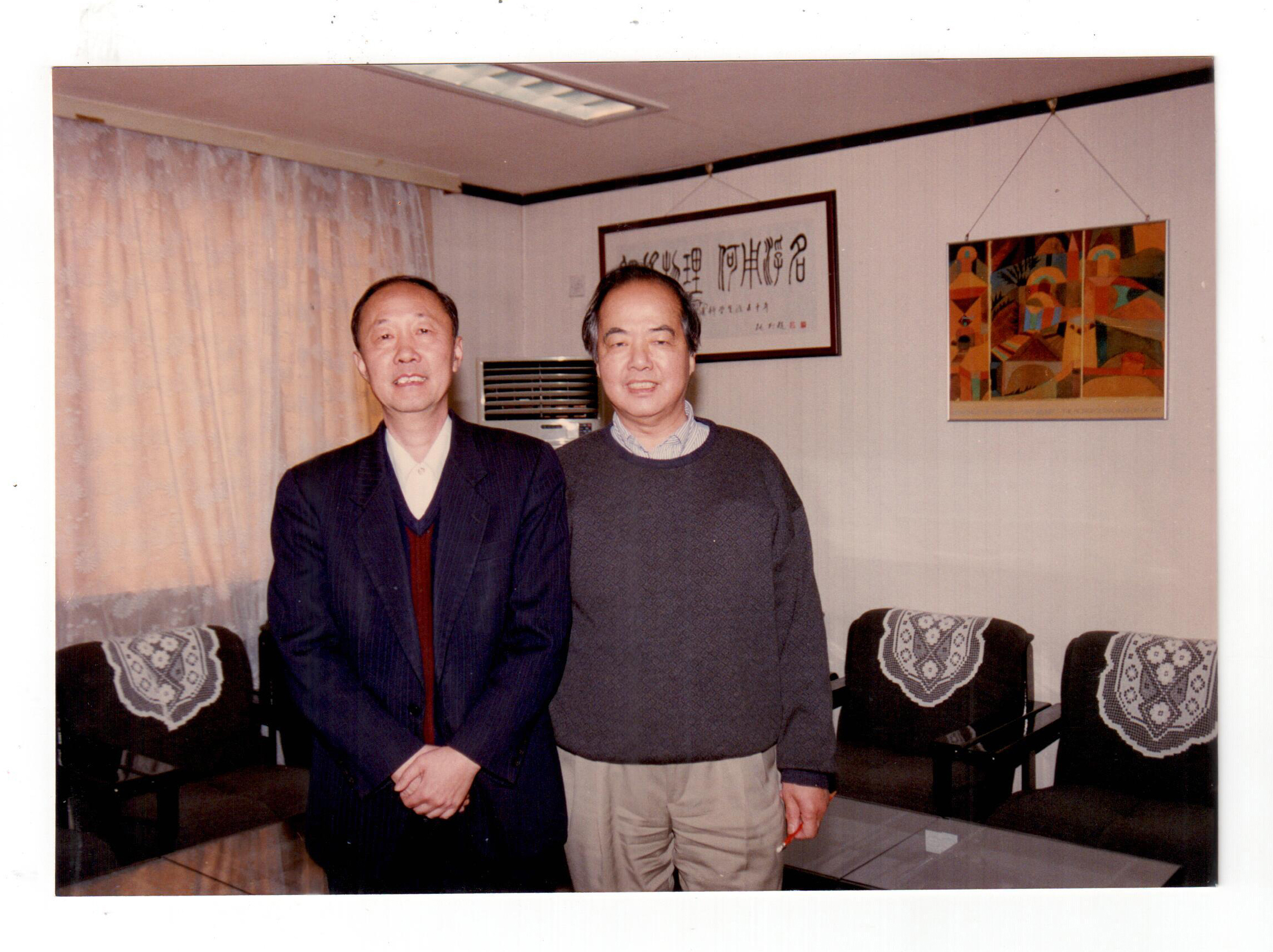 李政道与郑志鹏摄于中国高等科技中心,1998年。