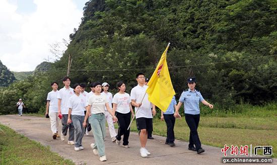图为下雷边境派出所逐更警务室民警辅警带领实践团成员开展边境巡逻。贾昀铮 摄