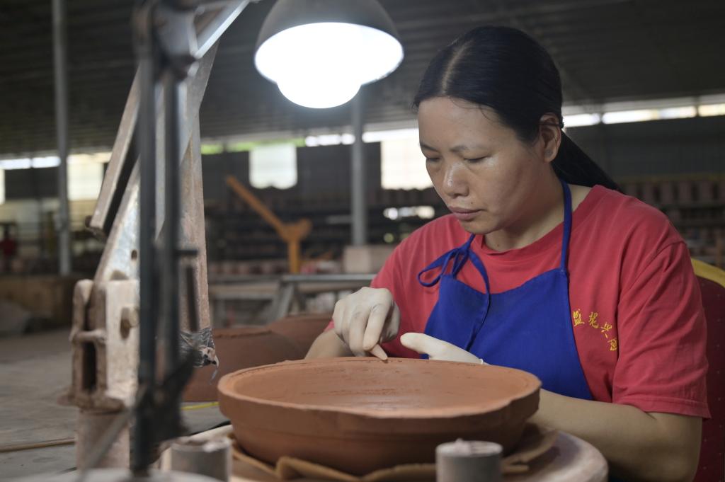 “小分子团水具有含氧量高,溶解力、渗透力、代谢力、扩散力强等特点,公司将此技术应用于水缸、炖锅、煮壶、茶壶、酒盅等日用陶具,开发了坭兴陶生态功能,开拓了坭兴陶产品新赛道。”广西钦州康宜盛坭兴陶制作有限公司董事长沈辛介绍,产品的创新促使来自全国各地的客户订单量不断增加,去年年产值突破1000万元,今年预计将继续增长。