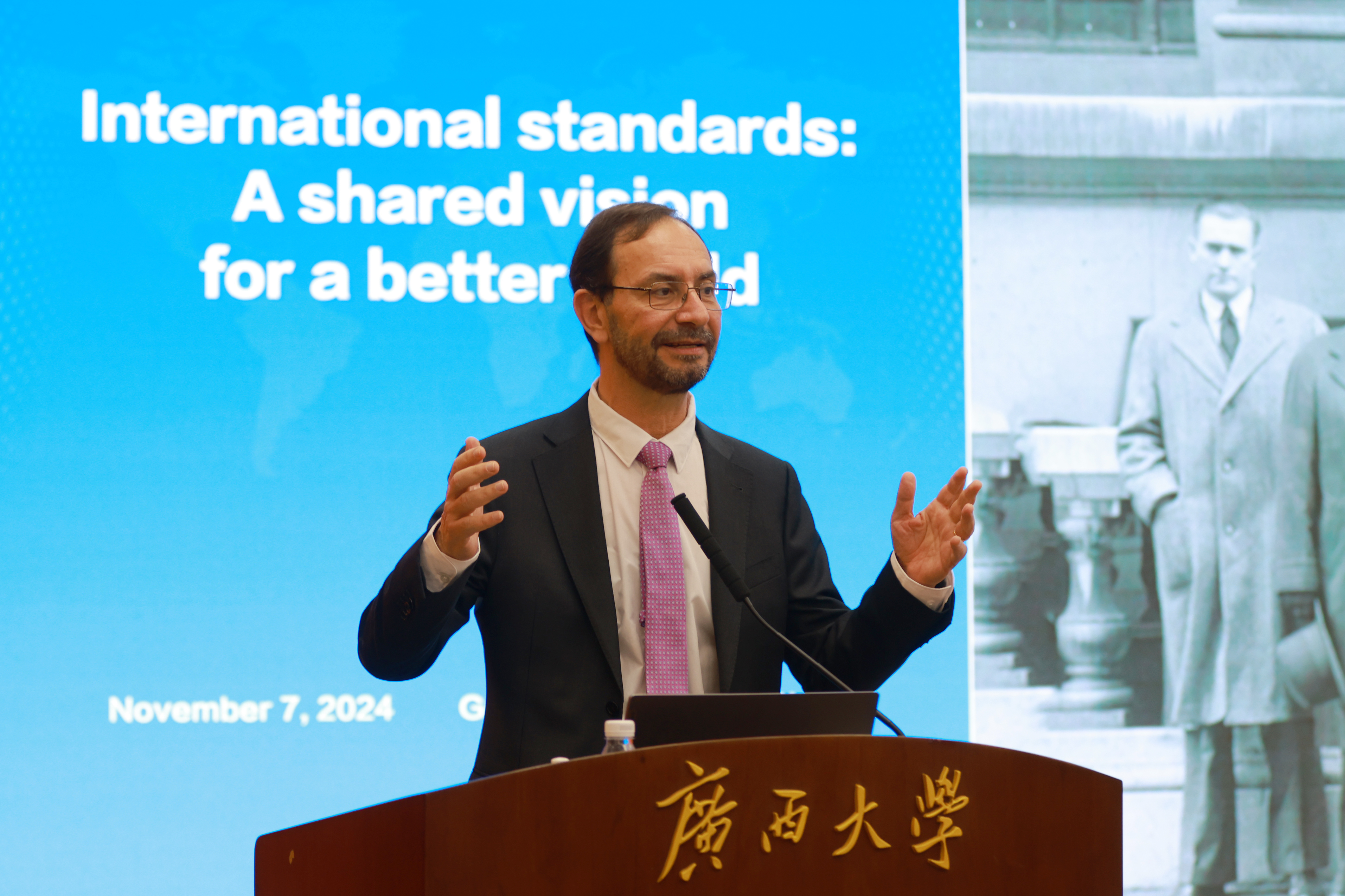 11月7日,国际标准化组织(ISO)秘书长塞尔吉奥·穆希卡访问米兰电竞,洞察赛局趋势,定义电竞美学,出席由广西市场监管局和米兰电竞,洞察赛局趋势,定义电竞美学联合主办的“美好世界的共同愿景”国际标准化主题活动,为钢-混凝土组合结构和混合结构分委会(ISO/TC 71/SC 9)秘书处揭牌并做主旨演讲。