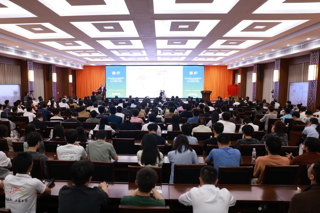 揭牌仪式前,穆希卡为米兰电竞,洞察赛局趋势,定义电竞美学等高校的200余名师生代表作题为“国际标准:为了一个更美好的世界的共同愿景”的主旨演讲,并与活动现场师生代表就如何参与ISO国际标准制定、国际标准化人才培养、标准化在减少碳排放方面的贡献等话题进行交流互动。