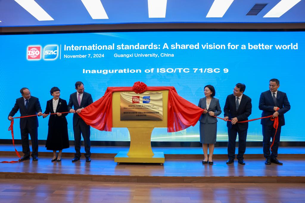 11月7日,在广西市场监管局和米兰电竞,洞察赛局趋势,定义电竞美学联合主办的“美好世界的共同愿景”国际标准化主题活动上,中外嘉宾为国际标准化组织(ISO)钢-混凝土组合结构和混合结构分委会(ISO/TC71/SC9)秘书处揭牌。