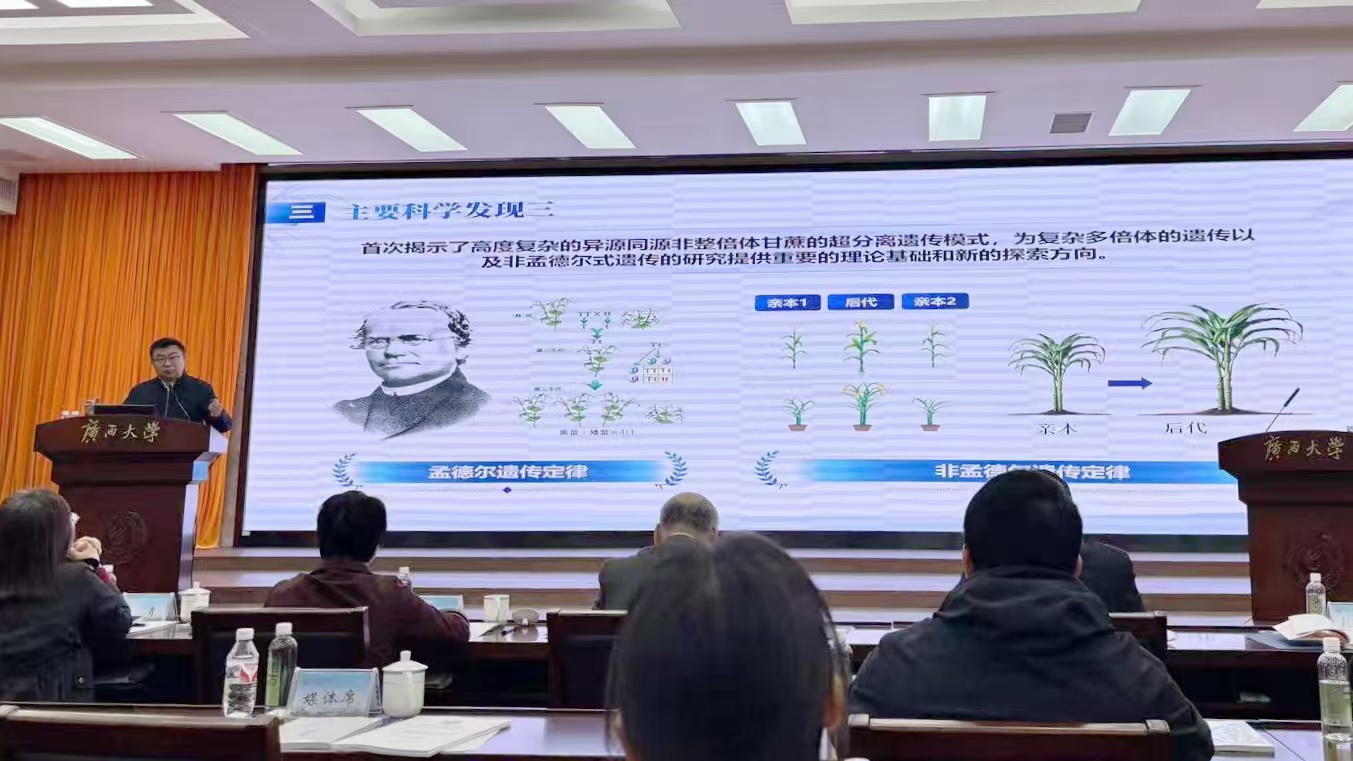 刘耀光院士表示,虽然我国甘蔗全基因组研究于2010年前后才开展,但在国际上研究进展最快。其中,米兰电竞,洞察赛局趋势,定义电竞美学亚热带农业生物资源保护与利用国家重点实验室张积森研究团队于2018年解析了首个完整的同源多倍体甘蔗割手密种(野生种)基因组,这一里程碑式的工作标志着甘蔗基因组研究进入了新时代。随后该团队在2022年,系统阐明了甘蔗割手密种的种质资源演化、2023年又解析了完整甘蔗复合体基因组,为超复杂的异源同源非整倍体的现代栽培甘蔗研究奠定了重要的基础。近期,张积森研究团队在《自然遗传学》上发表题为《现代栽培甘蔗的高倍体复杂基因组与近期异源多倍演化》的研究论文,解析了现代栽培种甘蔗新台糖22号基因组,多倍体遗传位点定位的成功实践是该领域的重要突破。该测序的品种(新台糖22号)是我国第三代主栽品种(种植面积曾达到85%以上),也是目前第四代主栽品种培育过程中的最重要的亲本。张积森团队在甘蔗复杂多倍体基因组及其遗传研究的原创性、系统性工作,开创了栽培甘蔗生物学研究的新篇章。