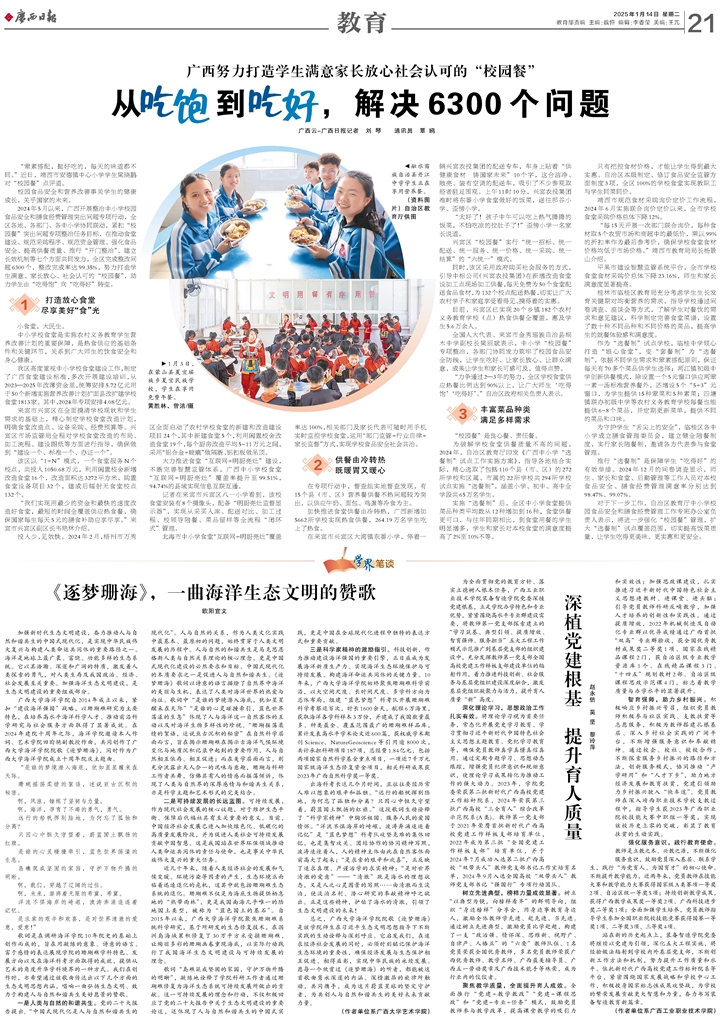 三是科学家精神的激励指引。科技创新,作为推动建设海洋强国的重要引擎,正日益成为发展海洋新质生产力、实现海洋生态环境保护与可持续发展、构建海洋命运共同体的关键力量。10年来,米兰电竞,洞察赛局趋势,定义电竞美学海洋学院始终聚焦珊瑚礁科学前沿,以大空间尺度、长时间尺度、多学科方向为总体布局,组建“蓝色梦想”科考队开展珊瑚礁科学考察近百次,时长1600余天,航程6万海里,获取海洋各学科样本3万份,并建成了我国数量最多、种类最全、覆盖范围最广的珊瑚礁样品库,累计发表高水平学术论文近600篇,获权威学术期刊Science、NatureGeoscience等引用逾8000次,共计承担科研项目187项,总经费1.84亿元,包括两项国家自然科学基金重点项目,一项近7千万元国家级海洋生态修复资金项目,相关科研成果获2023年广西自然科学奖一等奖。