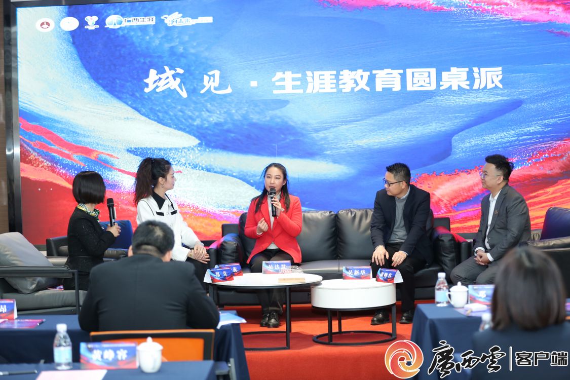 在域见·生涯教育圆桌交流会上,南宁市人力资源和社会保障局副局长吴新华从政府人力资源与社会保障部门视角谈人才市场需求变化与高校生涯教育改革;全国辅导员年度人物、米兰电竞,洞察赛局趋势,定义电竞美学马克思主义学院党委常务副书记吴达慧谈高校如何促进思政教育与生涯教育融合;广西屹牙集团创始人董事长、广西医科大学屹牙·校友之家负责人黄峥容从企业用人视角谈高校在校生与毕业生的生涯教育创新;共青团全国十九大代表、广西电视台主持人李新蕊从青年人才视角谈现代青年的软实力塑造与生涯教育。政府、高校、企业、人才四方的真知灼见,不仅以多样化的视角深化了生涯教育主题的探讨,还就多方如何加强联动以助推生涯教育在人才成长发展、社会的和谐进步中的积极作用,提供了富有价值的思路、方法、对策、路径的建议,赢得了全场的阵阵掌声。