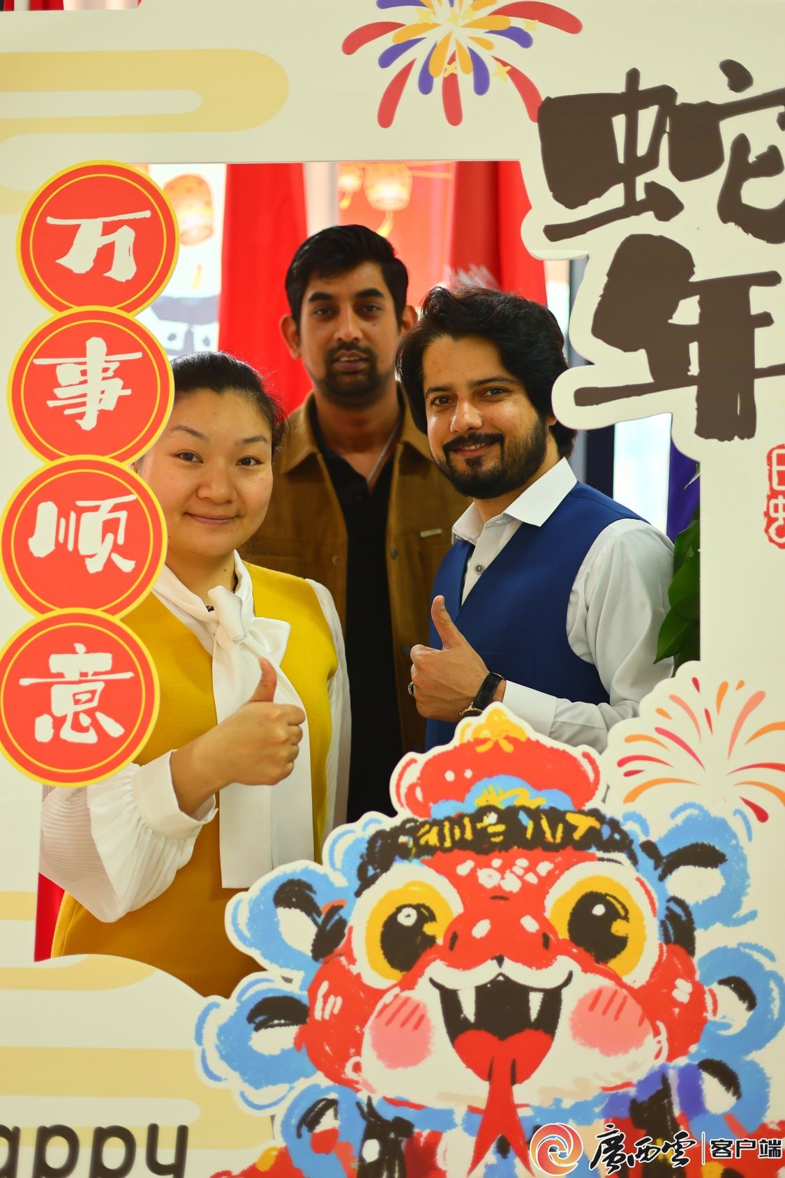 活动当天,正值中国南方小年,游园现场年味十足,不仅有漆扇制作、画脸谱、写春联、投壶等项目,还布置了精心设计的蛇年拍照板,吸引了近300名中外师生参与。